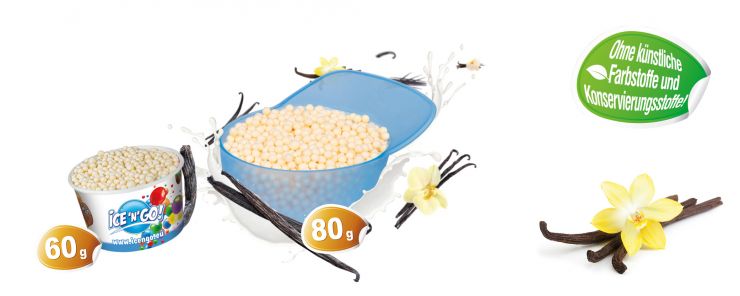Die Vanille ist ein Fixstarter in jeder Eisdiele. Und auch bei ICE'N'GO! gibt es diesen Klassiker in Kugerlform. Allerdings schmecken die kryogenischen Eiskügelchen besonders vanillig und sind am Verkaufsstand der garantierte Sommerhit!Eisdessert mit Vanillegeschmack